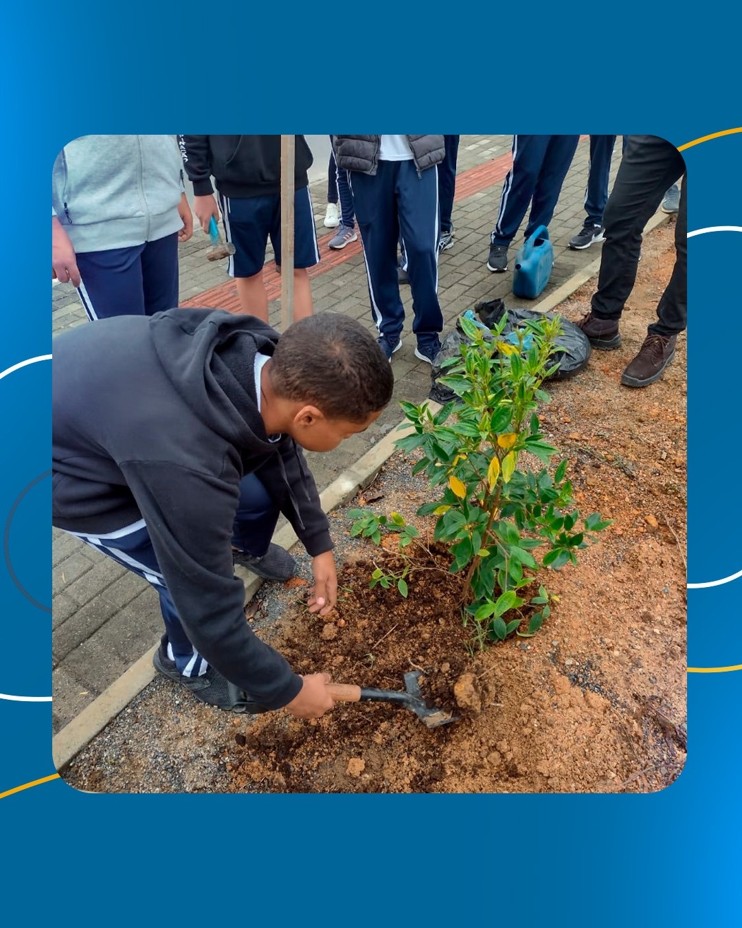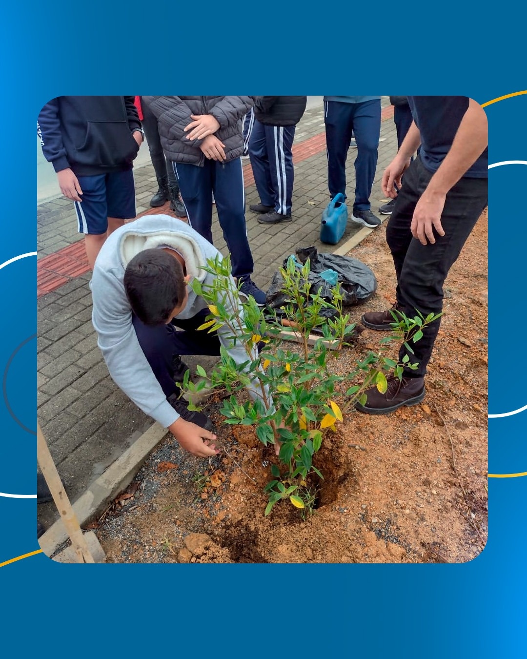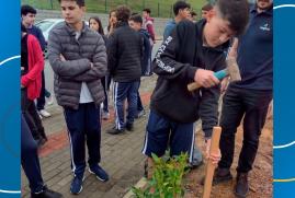 A ação aconteceu no dia 3 de outubro e foi realizada pelos alunos do 9º ano da Escola de Educação Básica São Ludgero. Ao todo foram 35 mudas de manacá e 2 pés de ipê.