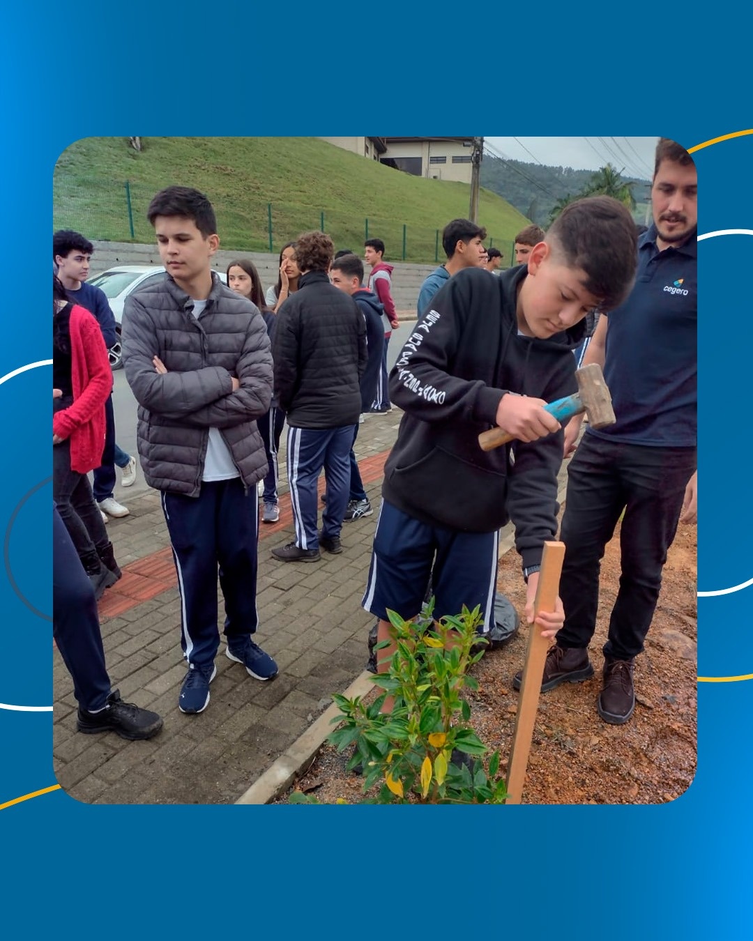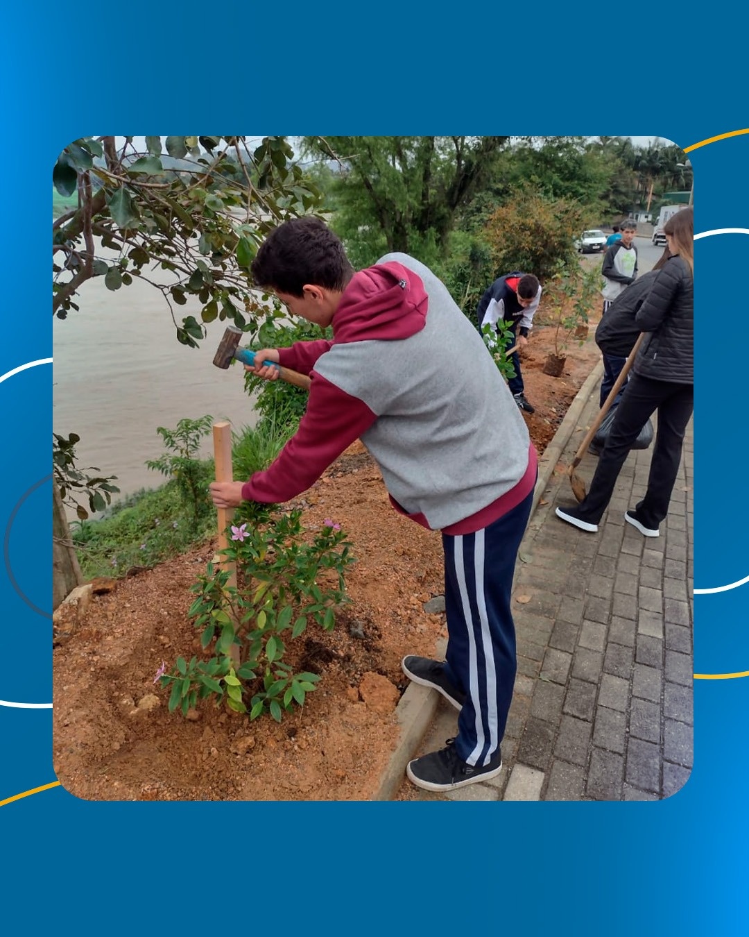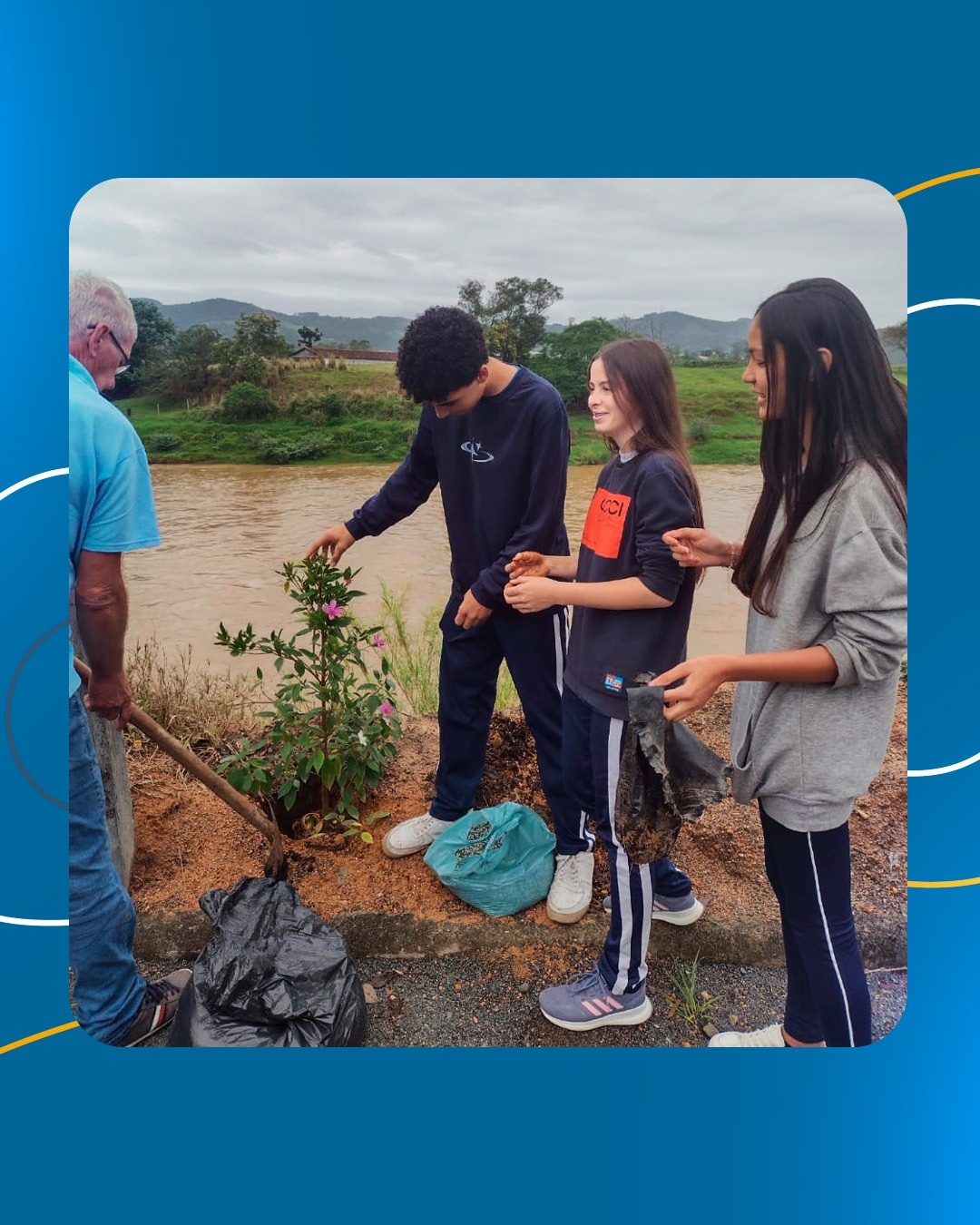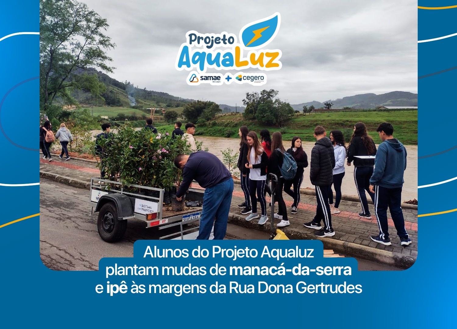 Com o objetivo de celebrar o Dia da Árvore e deixar as margens do rio Braço do Norte mais arborizada e florida, os alunos que integram o projeto Aqualuz (Programa de Formação de Jovens em Educação Ambiental e Infraestrutura Urbana), desenvolvido pela Cooperativa de Eletricidade de São Ludgero (Cegero) e o Serviço Autônomo Municipal de Água e Esgoto (Samae), plantaram mudas de manacá-da-serra e ipê às margens da Rua Dona Gertrudes em área localizada em frente à Cooperativa.