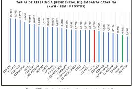 Um consumidor residencial que em 30 de setembro de 2021 pagava R$ 151,81, com a revisão tarifária de 2022, a fatura seria reajustada para R$ 179,35. No entanto, considerando também a medida de redução do ICMS definida pelo Governo Estadual de Santa Catarina, com redução do ICMS de 25% para 17%, o desembolso do consumidor será de R$ 155,00.