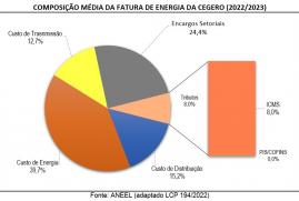 Em média, a cada R$100,00 de uma fatura mensal apresentada ao cliente, R$15,00 serão destinados à Cegero, para a cobertura dos custos com operação, manutenção e investimentos na rede de distribuição de energia elétrica. Outros R$52,00 serão destinados ao pagamento das despesas com geração e transmissão da energia, enquanto os R$33,00 restantes serão destinados aos encargos setoriais, impostos e tributos.