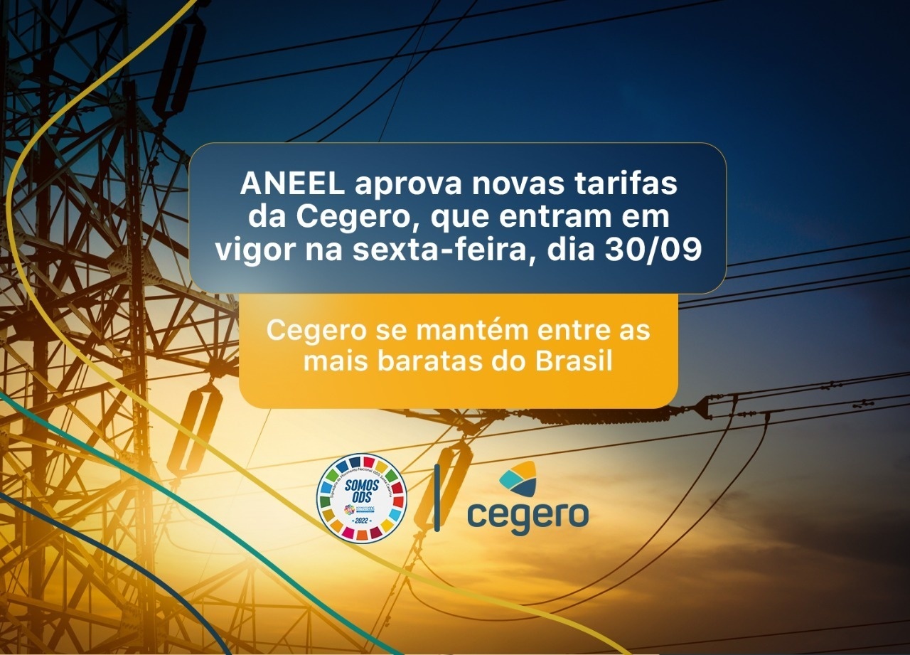 ANEEL aprova novas tarifas da Cegero, que entram em vigor na sexta-feira, 30/09/2022.