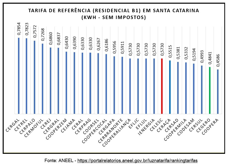 “Quando assumimos em 2017, a Cegero possuía 53,34% de desconto na compra de energia da Celesc, valor que chegou a ser de 67,35%. Por força da legislação, esses descontos passaram a ser reduzidos gradativamente no decorrer dos anos e nossa preocupação foi a de conseguir fazer uma transição que permitisse à Cegero se manter com a tarifa abaixo da Celesc e se possível entre as 3 mais baratas do Brasil. Em setembro de 2022 continuamos entre as mais baratas do Brasil e 15,5% abaixo da Celesc.”