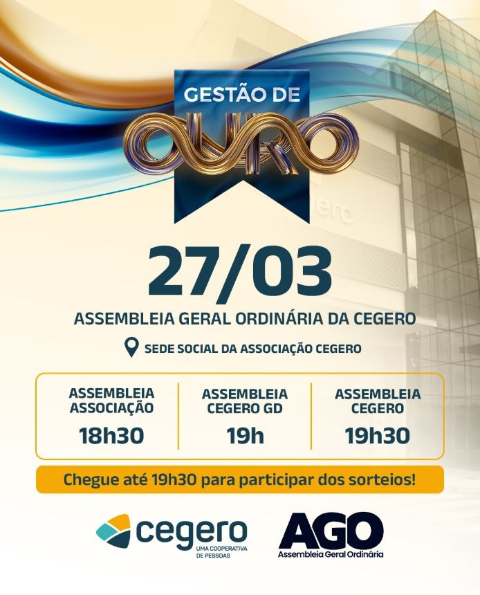 Para exercer o direito de voto, o associado deve ter operado com a Cegero em 2025, estar ativo com unidade consumidora, apresentar documento oficial com foto e estar em dia com suas obrigações junto à cooperativa. No caso de pessoas jurídicas associadas, é necessário apresentar contrato social e última alteração contratual ou ata devidamente registrada, para comprovação do representante legal. Já as entidades associadas, devem apresentar livro de atas ou estatuto social registrado. Não será permitida a votação por procuração. Débitos quitados junto aos agentes arrecadadores no dia 27 de março não habilitam o associado a votar.