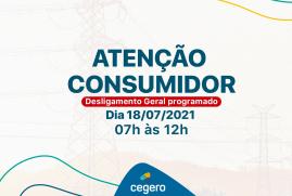 Atenção Consumidor: Desligamento geral programado para o dia 18/07 das das 07h às 12h