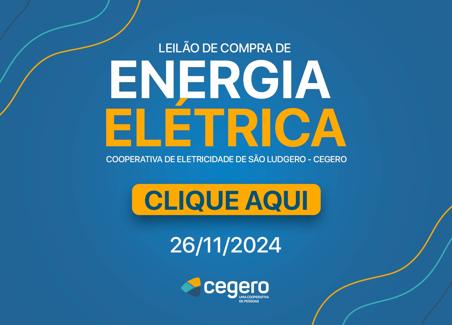 A COOPERATIVA DE ELETRICIDADE DE SÃO LUDGERO, "CEGERO", inscrita no CNPJ nº 86.444.163/0001-89, e a COOPERZEM COOPERATIVA DE DISTRIBUIÇÃO DE ENERGIA ELÉTRICA, "COOPERZEM", inscrita no CNPJ nº 78.829.843/0001-92 de forma a assegurar publicidade, transparência e igualdade de acesso aos interessados, conforme legislação aplicável, comunica que realizará em 26/11/2024 Leilão de Compra de Energia Elétrica.