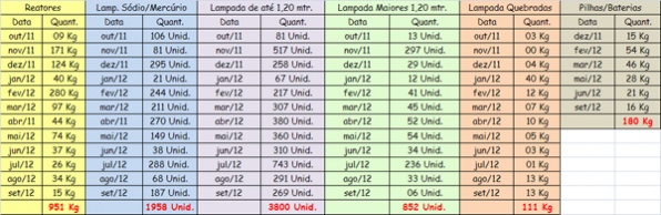Ao todo foram recolhidos 951 quilos de reatores, 1958 lâmpadas sódio/mercúrio, 3.800 lâmpadas até 1,20 metros, 852 lâmpadas maiores de 1,20 metros, 111 quilos de lâmpadas quebradas e 180 quilos de pilhas e bateriais. Além de trabalhar forte a distribuição de energia elétrica com qualidade e ter participação direta em projetos sociais do município, a Cooperativa de Eletricidade de São Ludgero, está preocupada com o Meio Ambiente. Caixas coletoras foram instaladas em vários pontos estratégicos.