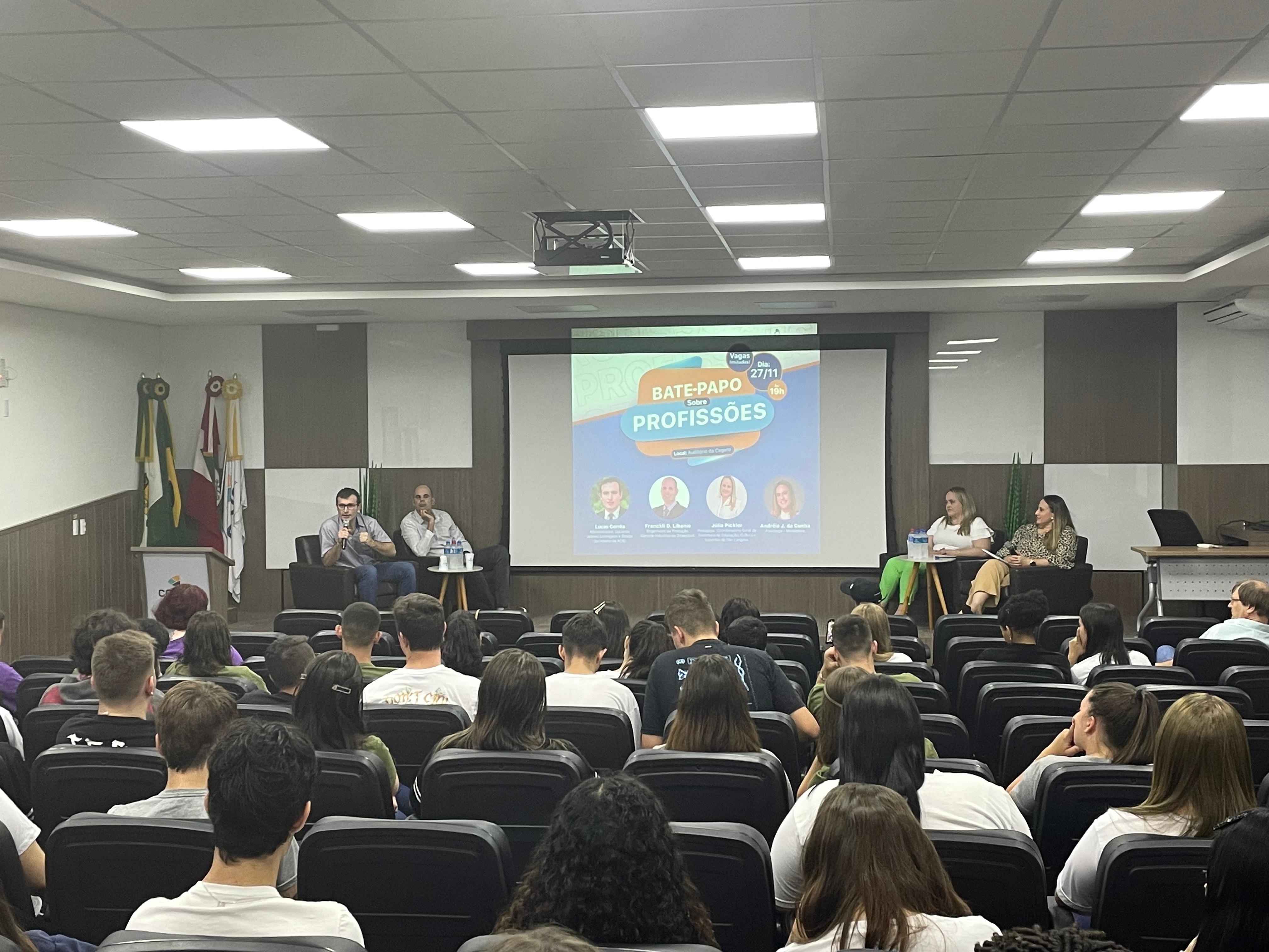 Com a participação dos profissionais consolidados no mercado Franckli D. Libanio (Engenheiro de Produção e Gerente Industrial da Strawplast), Júlia Pickler (Pedagoga e Coordenadora Geral da Secretaria de Educação, Cultura e Esportes de São Ludgero) e Lucas Corrêa (Administrador, Sócio da Jallmec Usinagens e Diretor Secretário da Associação Comercial e Industrial de Orleans - ACIO), com mediação da psicóloga Andréia J. da Cunha, a Cooperativa de Eletricidade de São Ludgero (Cegero), por meio do Comitê de Cooperativismo, concluiu a terceira edição do projeto “Orientação profissional, com foco na formação de novas lideranças” no dia 27 de novembro, a partir das 19 horas, no Auditório Danilo Niehues, com um bate-papo sobre profissões.