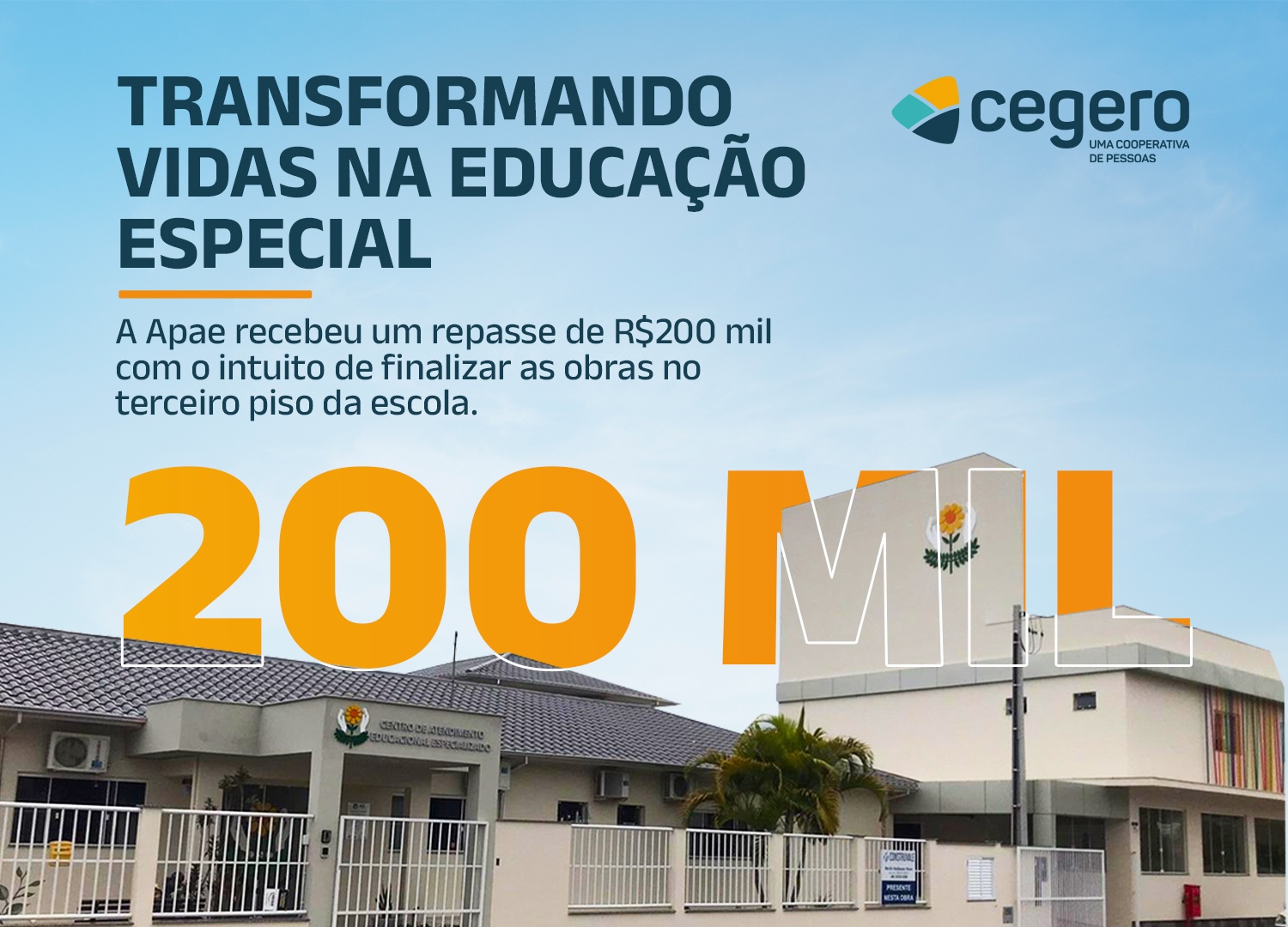 Cegero destina 200 mil para Apae finalizar obras no terceiro piso da Escola de Educação Especial