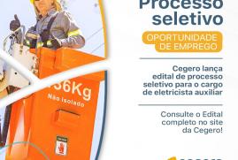 Cegero faz processo seletivo para eletricista auxiliar, salário inicial de R$3.433,16 + benefícios