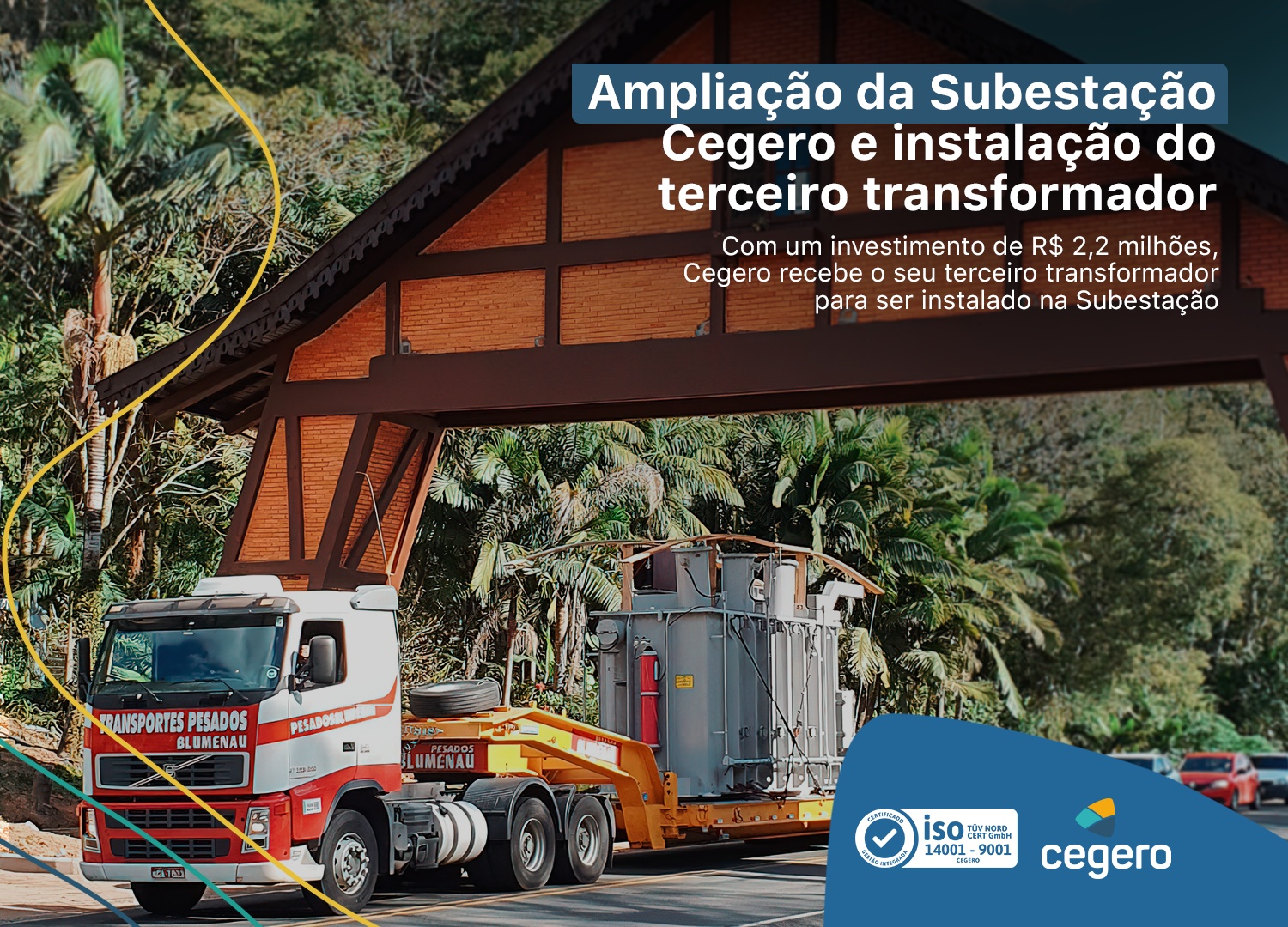 O terceiro transformador, da marca Weg, 138 kV, 20/26 MVA, comprado pela Cooperativa de Eletricidade de São Ludgero (Cegero) para a ampliação da sua subestação, com o objetivo de garantir o fornecimento de energia e desenvolvimento da sua área de atuação, chegou na Subestação Cegero. O investimento no transformador foi de R$ 2.205.436,16. A obra total de ampliação da Subestação deve ser concluída no mês de outubro e chegará num investimento total de R$ 5,5 milhões.