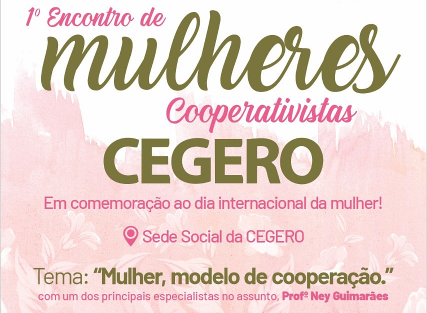 Com o objetivo de celebrar o Dia Internacional da Mulher (8 de março) a Cooperativa de Eletricidade de São Ludgero (Cegero) com o apoio da Associação Interativa de Mulheres (Assim), promove o 1º Encontro de Mulheres Cooperativistas, no dia 5 de março, às 19h30min, na Sede Social da Associação Cegero, com a palestra “Mulher, modelo de cooperação” ministrada pelo renomado professor Ney Guimarães. O evento é gratuito, as vagas são limitadas, e as interessadas devem garantir seu convite.