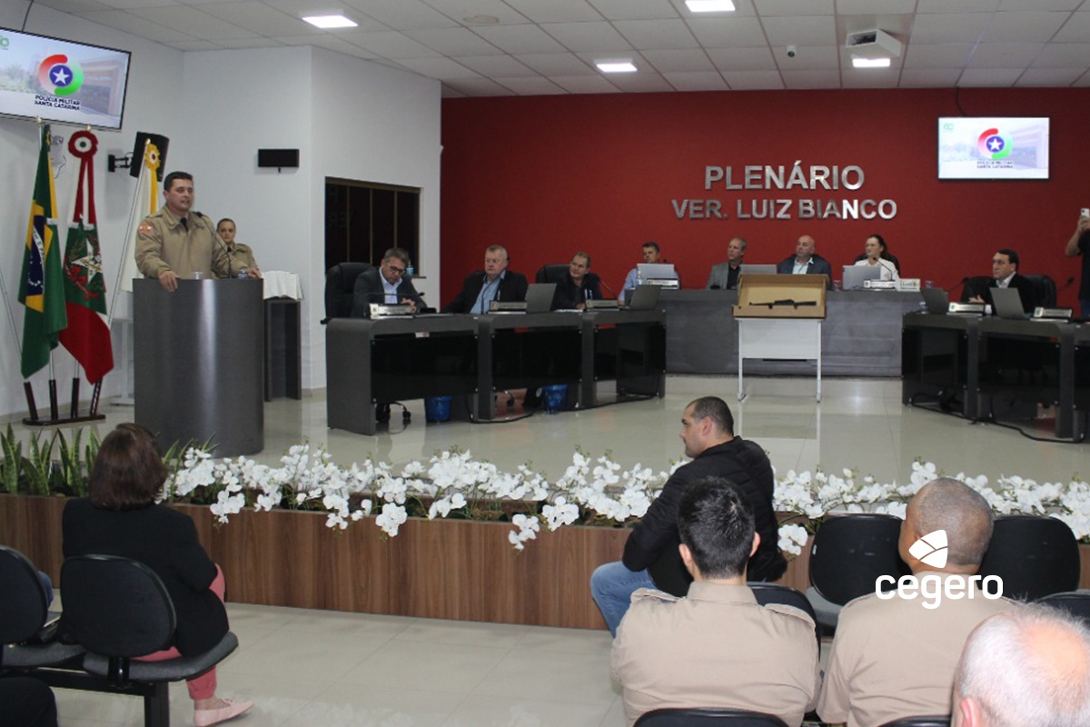 A homenagem da Cegero foi entregue ao presidente Francisco Niehues Neto, o Chico, pelo Tenente Coronel Marcos Aurélio Ramm, comandante do 35º Batalhão da Polícia Militar de Braço do Norte, o Subcomandante, Major Luiz Paulo Fernandes, e pelo 3º Sargento PM Arcione Oenning Dacorégio, comandante do Destacamento da Polícia Militar de São Ludgero. Também receberam a comenda o prefeito de São Ludgero, Ibaneis Lembeck, o Iba, o vereador Jairo Luiz Borges, a Família Schlickmann, a Família Becker e ao ex-vereador Edemilson Daufembach, pelas contribuições à segurança pública.
