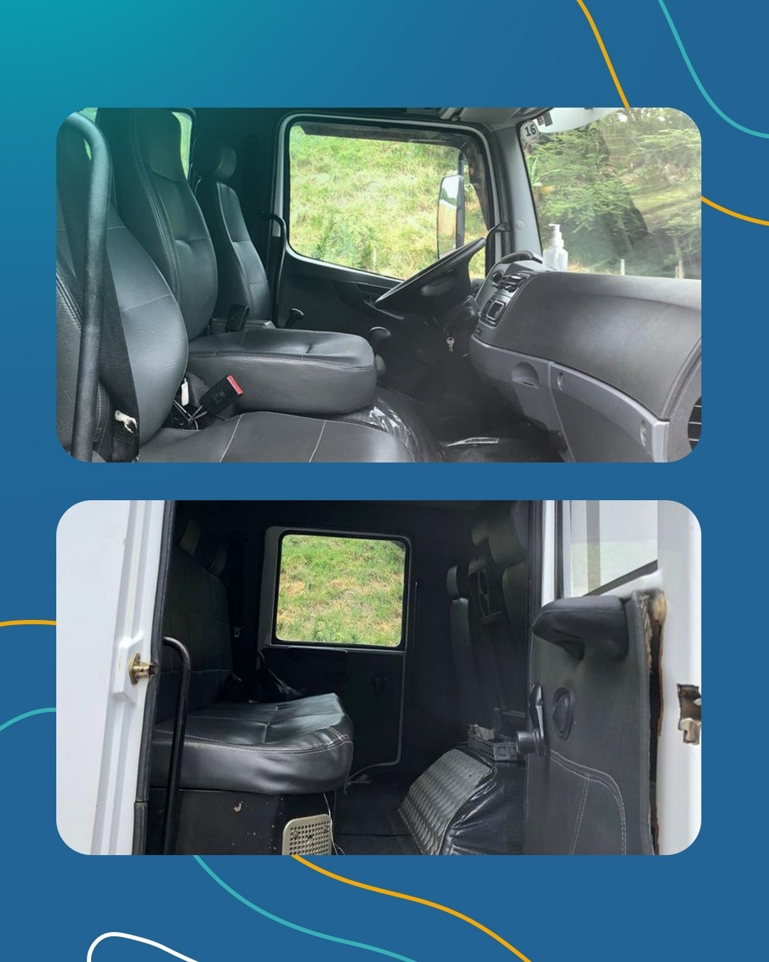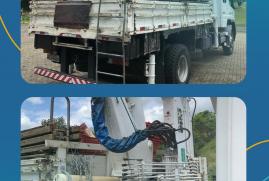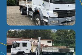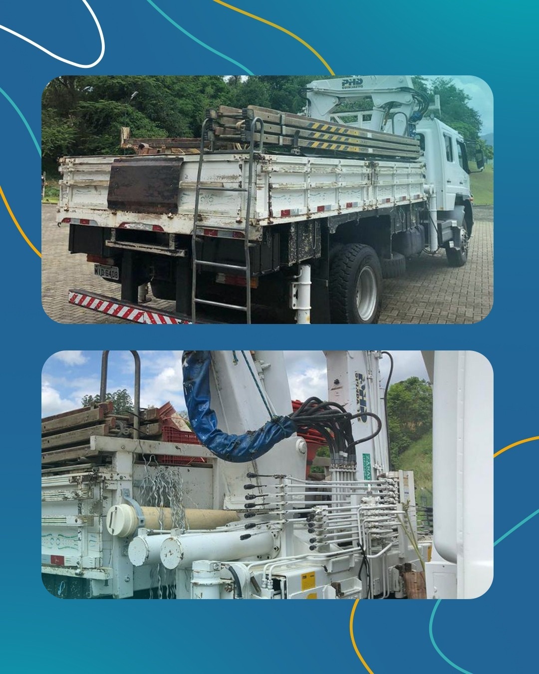 IMPLEMENTOS ADICIONAIS: Cabine estendida com capacidade para 6 lugares, guindaste PHD16000 e carroceria de madeira.