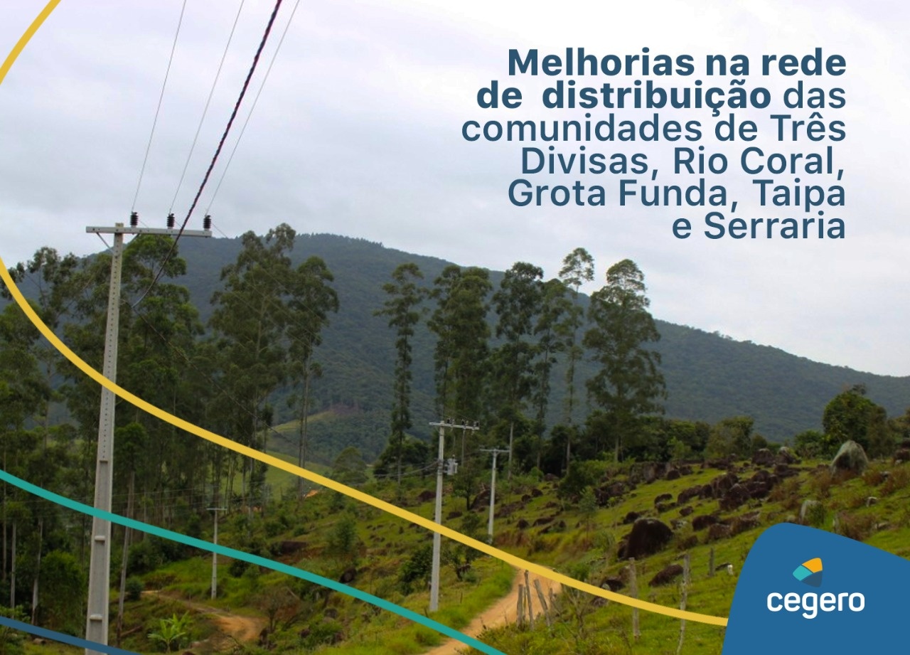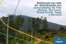 A Cooperativa de Eletricidade de São Ludgero (Cegero) segue firme com os investimentos em melhorias nas redes de várias comunidades do interior. Atualmente, melhorias estão acontecendo na Grota Funda, Rio Coral, Três Divisas, Taipa e Serraria.