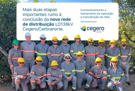 Artur explica que o comissionamento que é realizado nas estruturas da rede em construção trata-se de uma etapa fundamental na implementação do projeto elétrico. “Por meio deste processo todos os componentes e sistemas elétricos são testados e verificados para garantir que foram instalados corretamente para o seu funcionando. No caso específico da rede da Cegero/Cerbranorte está sendo conferido o aterramento, as ferragens e a montagem em geral”, detalha. Já no caso da capacitação dos colaboradores o instrutor pontua que é de extrema importante para que a nova rede de distribuição receba suas manutenções conforme estabelecido em normas, preservando a eficiência na condução da energia elétrica entre as subestações ao longo dos anos. “Os próprios colaboradores da Cegero e da Cerbranorte que receberam a capacitação, conhecimento, que estão participando da ação de realizar o comissionamento de todas as estruturas, terão no futuro condições de analisar e identificar peças e estruturas que precisam ser substituídas” revela. Ao todo passam pela capacitação 7 colaboradores da Cegero e 8 da Cerbranorte.