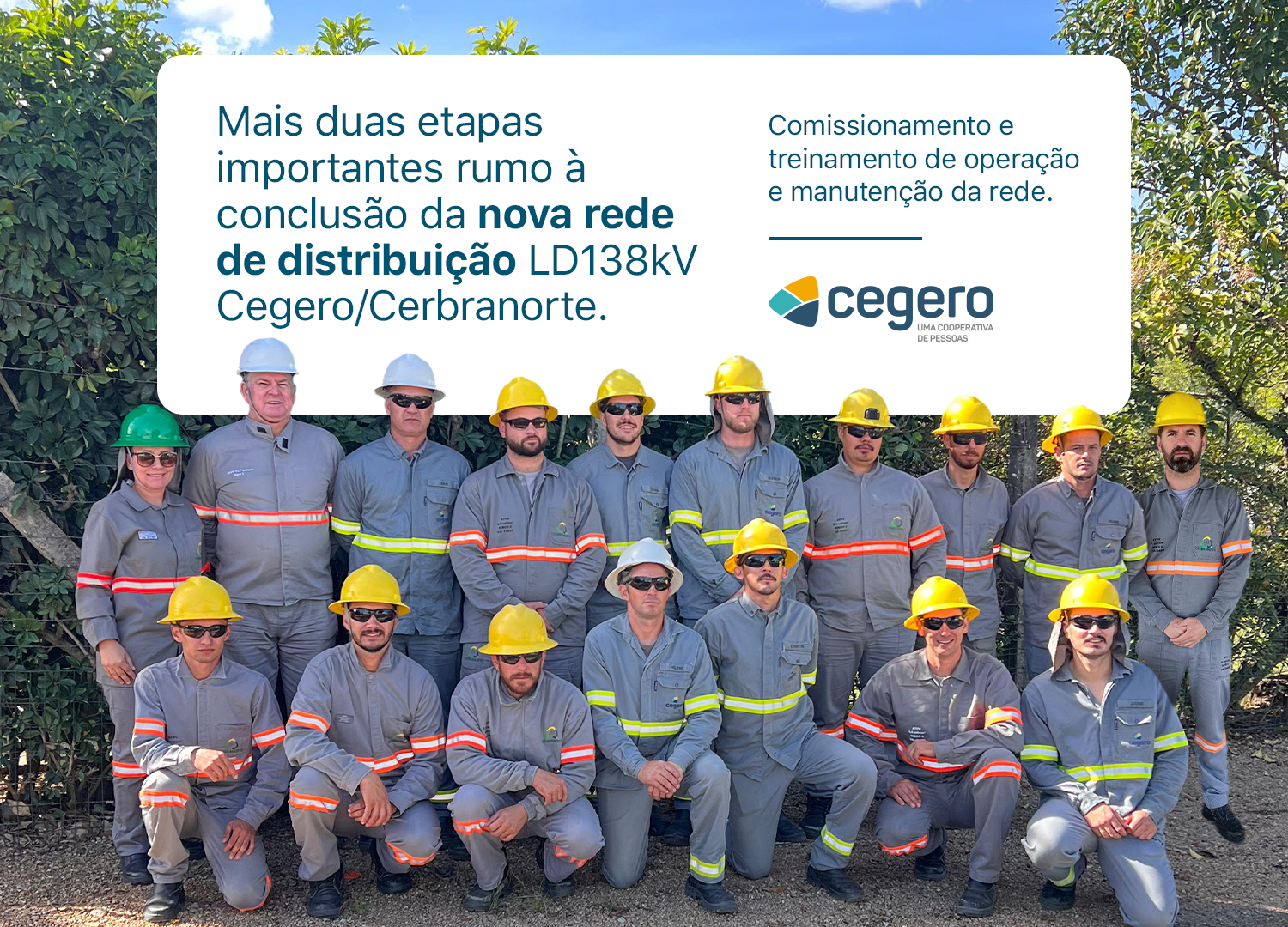 Mais duas etapas importantes rumo à conclusão da nova rede de distribuição LD138KV, construída em parceria entre a Cooperativa de Eletricidade de São Ludgero (Cegero) e a Cooperativa de Eletrificação de Braço do Norte (Cerbranorte), estão sendo finalizadas. Trata-se do comissionamento e a capacitação dos colaboradores das cooperativas para estarem habilitados a realizarem as manutenções necessárias. É importante lembrar que a obra garantirá por muitos anos o progresso e o desenvolvimento da região, além de promover a redução na tarifa dos associados e consumidores.