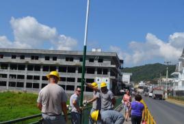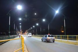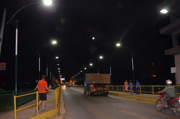 Iluminação de led já foi ligada na ponte que corta o centro da cidade