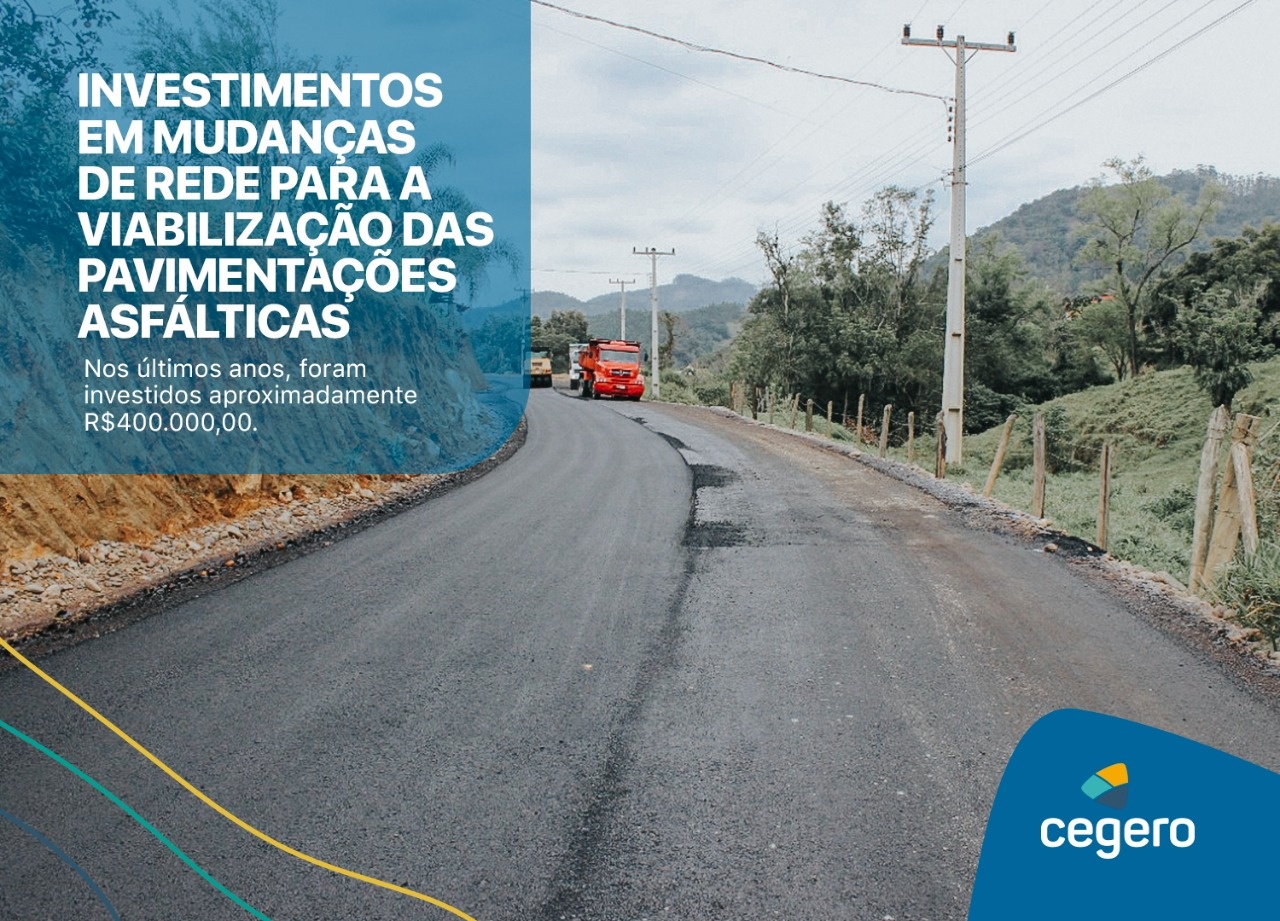 Com o objetivo de ajudar a viabilizar as pavimentações asfálticas das áreas urbana e rural, a Cegero investiu nos últimos anos aproximadamente R$ 400.000,00 em mudanças de rede no município de São Ludgero, sendo uma das grandes parceiras da prefeitura no desenvolvimento do município. Entre as mudanças de rede realizadas, para que a equipe da Secretaria de Obras pudesse fazer os alargamentos necessários para execução das pavimentações, estão as comunidades do Mar Grosso, Morro do Cruzeiro, Santo Antônio, Barra do Norte, Ponte Baixa, Bom Retiro e ruas no perímetro urbano da cidade.