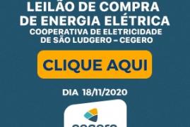 A COOPERATIVA DE ELETRICIDADE DE SÃO LUDGERO, "CEGERO", inscrita no CNPJ nº 86.444.163/0001-89, de forma a assegurar publicidade, transparência e igualdade de acesso aos interessados, conforme legislação aplicável, comunica que realizará em 18/11/2020 Leilão de Compra de Energia Elétrica, conforme orientações disponíveis no endereço eletrônico www.cegero.coop.br/leilao