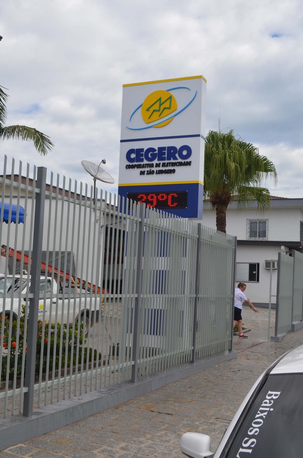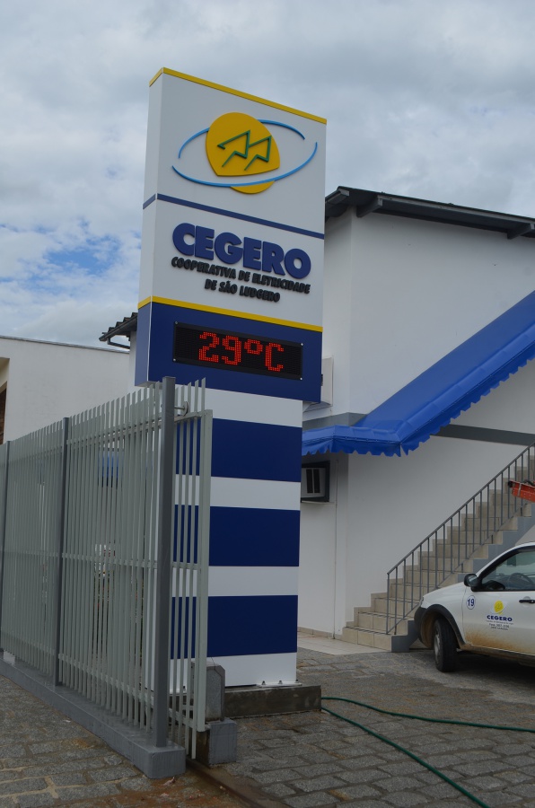 No mês de fevereiro, foi instalado o novo Totem (placa de identificação) na Sede Administrativa da Cooperativa de Eletricidade de São Ludgero (Cegero). Ela possui 5,50 metros de altura por 1,70 de largura. Com um belo e moderno layout, além do nome da Cooperativa, o Totem informa a hora, a temperatura e também o dia do mês e da semana. A empresa responsável pela instalação foi a Multiimagens de Braço do Norte e o investimento realizado pelo Conselho de Administração foi de R$ 37.752,00.