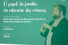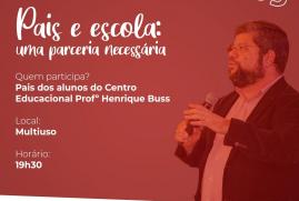 As três palestras serão ministradas no Centro Cultural Multiuso Dimas Schlickmann. Com o tema “Pais e escola: uma parceria necessária” no dia 17 de março, às 19h30min, terça-feira, o evento é direcionado aos pais e familiares de alunos que frequentam o Centro Educacional Professor Henrique Buss. Já no dia 18, quarta-feira, com o tema "O papel da família na educação das crianças", no mesmo horário, será a vez de todos os pais ou responsáveis por alunos que frequentam a Educação Infantil da Rede Municipal formada pelas instituições Divina Providência, Menino Deus, Irmã Stella, Dom Gregório Warmeling e extensão que funciona na Escola de Ensino Fundamental Bom Retiro, marcarem presença. E, no dia 19, quinta-feira, mesmo horário, 19h30min, com o tema “Pais e escola: uma parceria necessária” será a vez dos pais e familiares de alunos das escolas da Rede Estadual, Escola de Educação Básica São Ludgero (Colegião) e Escola de Ensino Fundamental Bom Retiro, participarem.