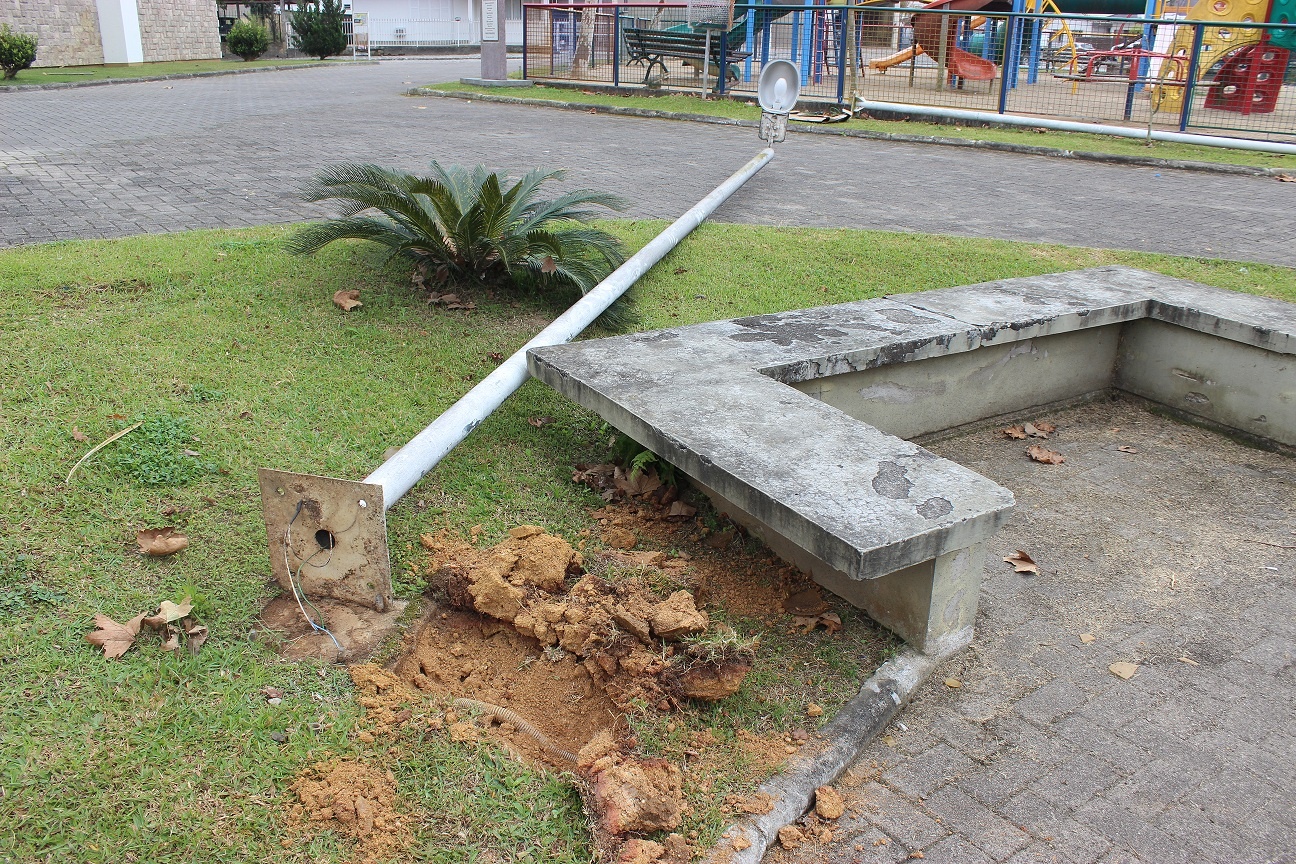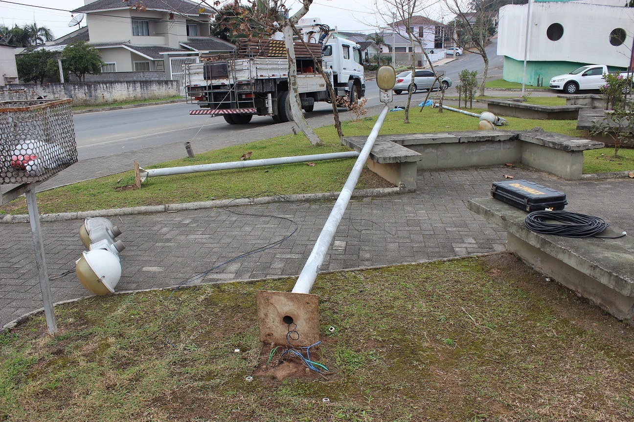 A iluminação no local foi desligada após ter sido detectado que em dias de chuva existia risco de choques, diante de problemas existentes na parte elétrica.