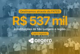 A Cooperativa de Eletricidade de São Ludgero (Cegero) oficializou os primeiros termos de repasses financeiros via Fundo de Assistência Técnica Educacional e Social (FATES) na sexta-feira, 11 de abril, às 14 horas, na sede da cooperativa, com a presença do presidente Tito Hobold, o Ticão, o vice-presidente Mário Schlickmann, o secretário Valentim Baschirotto e representantes das entidades. A soma total de repasses a serem destinados é de R$ 537.000,00.