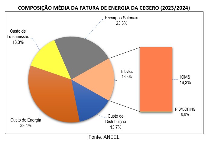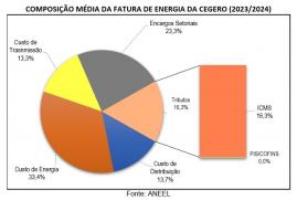 Na prática, em média, a cada R$ 100 de uma fatura mensal apresentada ao cliente, R$13,70 serão destinados à Cegero, para a cobertura dos custos com operação, manutenção e investimentos na rede de distribuição de energia elétrica. Outros R$ 46,70 serão destinados ao pagamento das despesas com geração e transmissão da energia, enquanto os R$ 39,60 restantes serão destinados aos encargos setoriais, impostos e tributos.