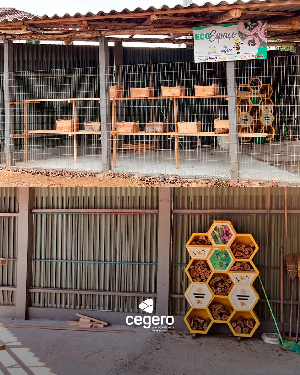 O local recebeu pintura, piso, reforma dos alambrados, ampliação do telhado e novas colmeias de abelhas sem ferrão. Meses atrás a Cegero, a pedido do grupo, promoveu capacitação de meliponicultura com um dos maiores especialistas da atualidade na área específica, o pesquisador da Embrapa, Ricardo Rodrigues de Camargo, visando a importância das abelhas sem ferrão para o Meio Ambiente, a sociedade e a economia. O objetivo da Com-Vida é utilizar o EcoEspaço também para a criação das abelhas sem ferrão.
