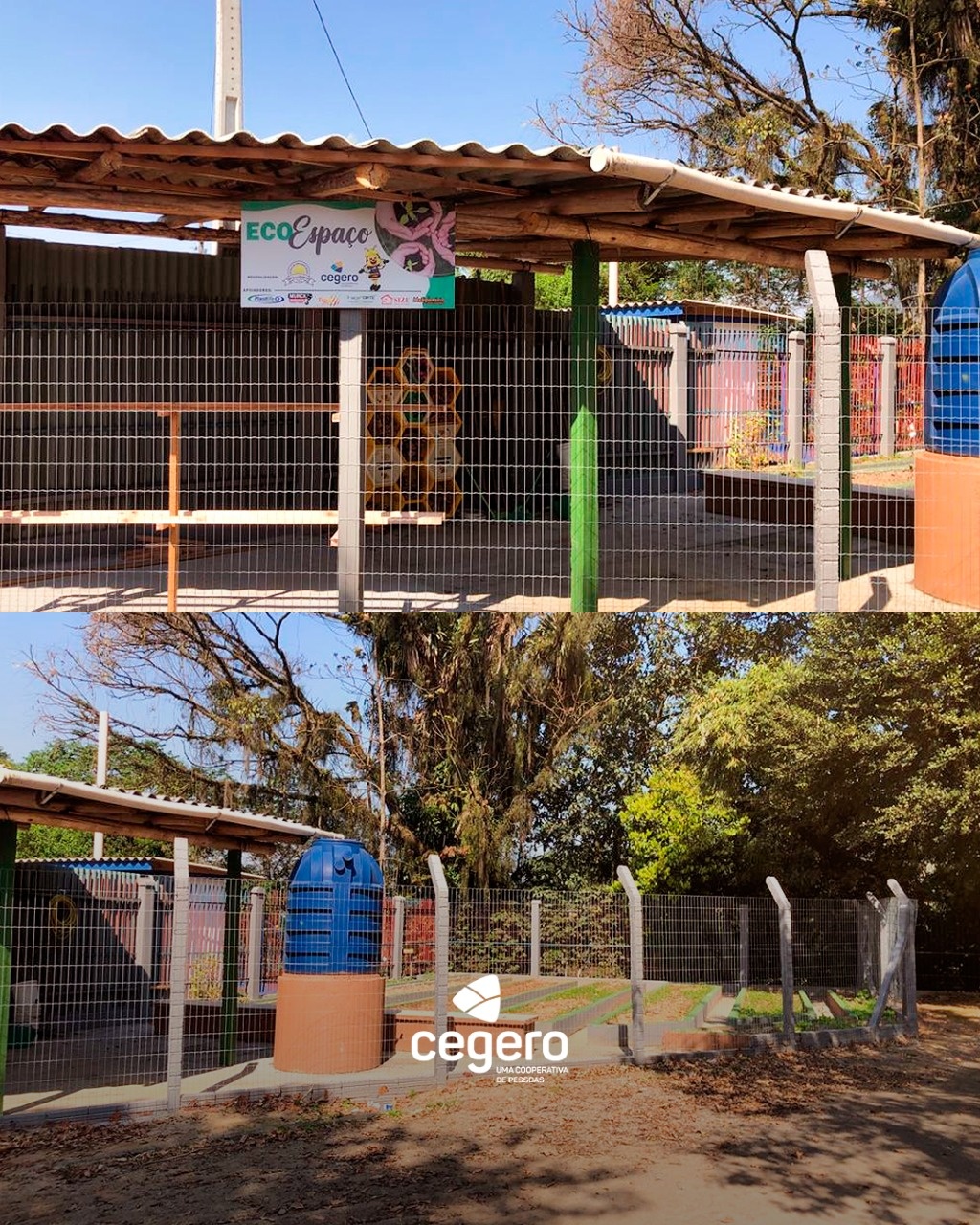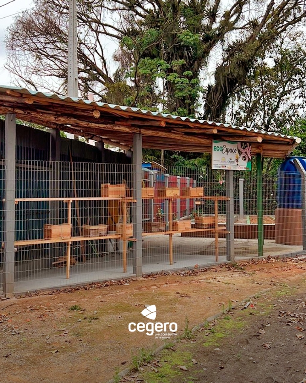 Além do investimento da Cegero, o EcoEspaço contou com o apoio da empresa Plastlife, Munck Menegasso, Tigre Center, TraçoFORTE, Size Design & Construção e Meliponário São Ludgero.